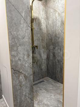 В огромной ванной комнате установлена большая угловая ванная, подвесной унитаз с системой бесшумного слива, итальянская и немецкая сантехника, вытяжка и подогрев пола. Все коммуникации в скрытой нише: система водоподготовки, счетчики, водонагреватель на 100л. Сделана звукоизоляция труб.