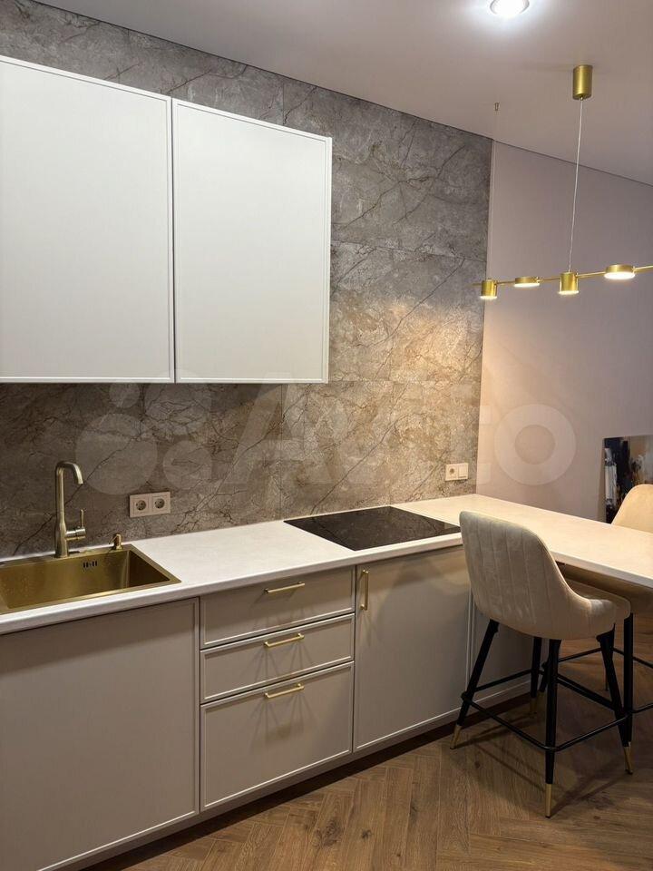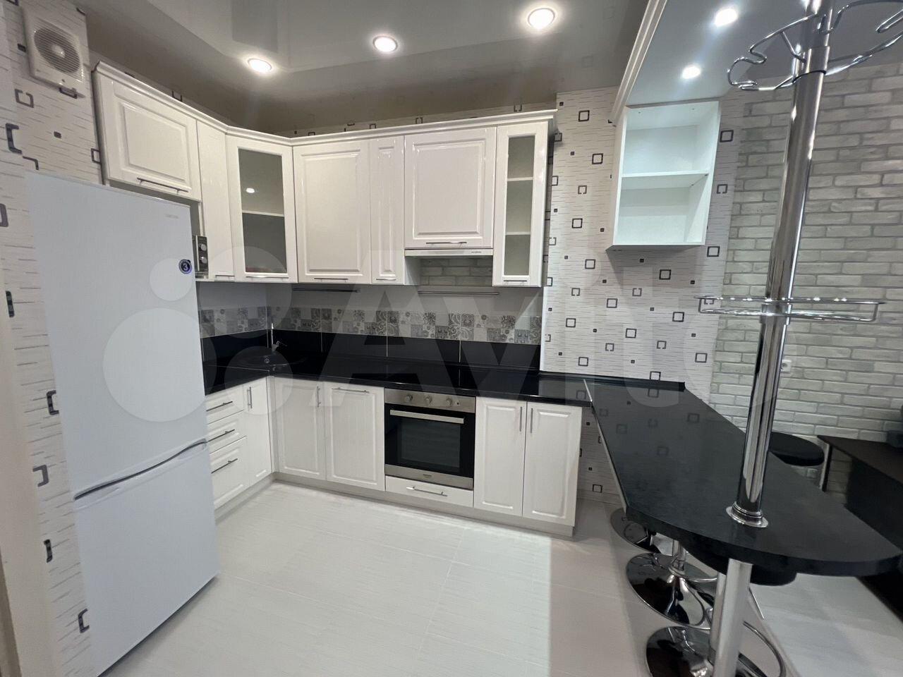 Кухонная техника: холодильник, индукционная варочная плита, духовой шкаф, встроенная вытяжка, встроенная 60 см посудомоечная машина, микроволновая печь. Имеется 5 ступенчатая система очистки питьевой воды с осмосом.