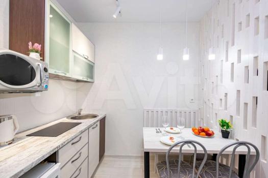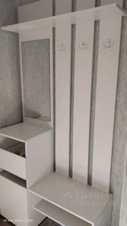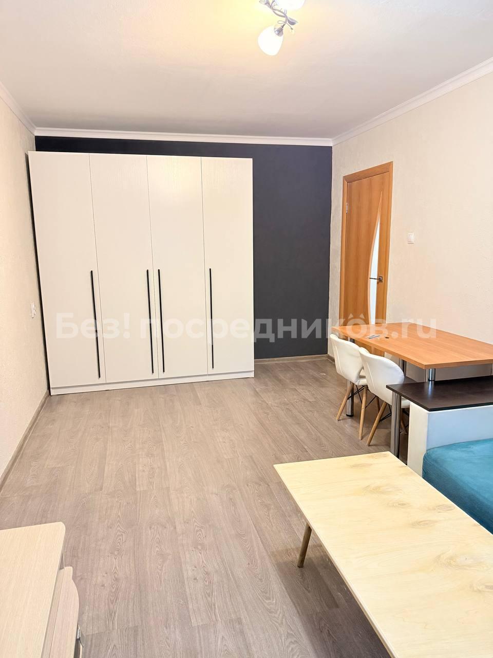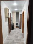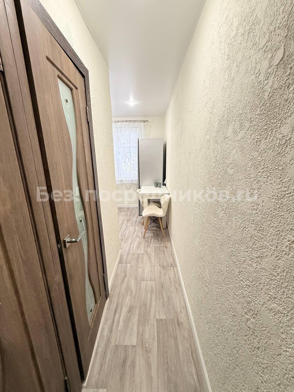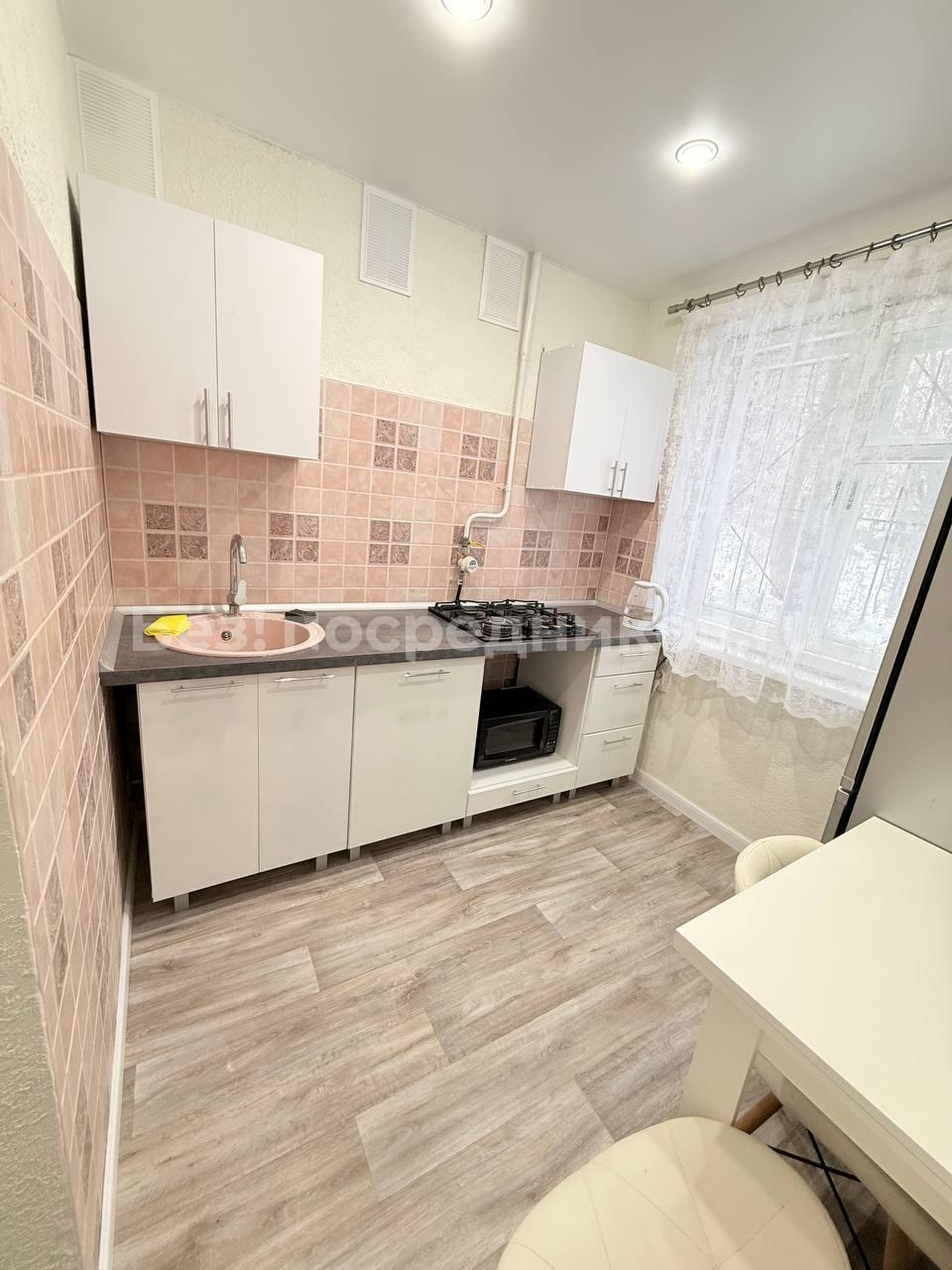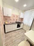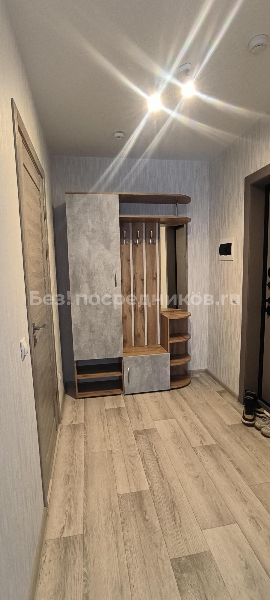 В квартире сделан свежий косметический ремонт. На кухне гарнитур, обеденный стол, табуретки. В комнате - шкаф-купе и журнальный столик, в прихожей кладовочка и вешалка для одежды. В санузле шкафчик с зеркалом и раковина на тумбе.