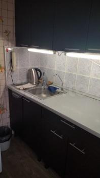 - вместительный кухонный гарнитур с подстветкой и вся необходимая бытовая техника фильтр родничок c питьeвой водой, посудомоечная машина, микроволновая печь, электроплита электрочайник, посуда);