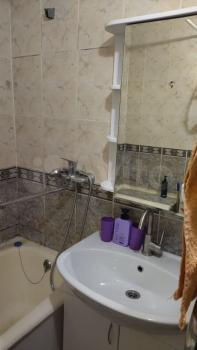Санузел совмещённый, оформлен свежими плитками с морской тематикой, что добавляет оригинальности интерьеру. Двор оборудован детской площадкой, рядом с домом вместительная парковка (проблем с парковкой нет).