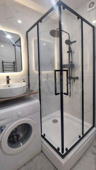 -оборудованная всем необходимым ванна (вместительная тумба с шикарной раковиной, душевая кабина).