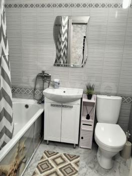Кухня оборудована всем необходимым для приготовления пищи. Ванная комната светлая и аккуратная, оснащена ванной и раковиной.