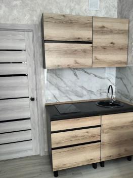 санузел - совмещённый, мебель - кухня, хранение одежды, спальные места, кондиционер, холодильник, плита, стиральная машина.