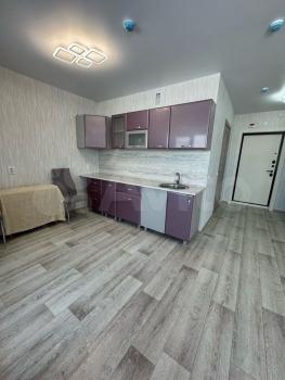 Сдается студия (площадь 26,1 кв м) на 7 этаже современного монолитного-кирпичного дома 2026 года постройки с лоджией. Дом оборудован консьержем и имеет пассажирский и грузовой лифты. Во дворе закрытая территория с большой парковкой за шлагбаумом и спортивной площадкой.
