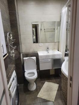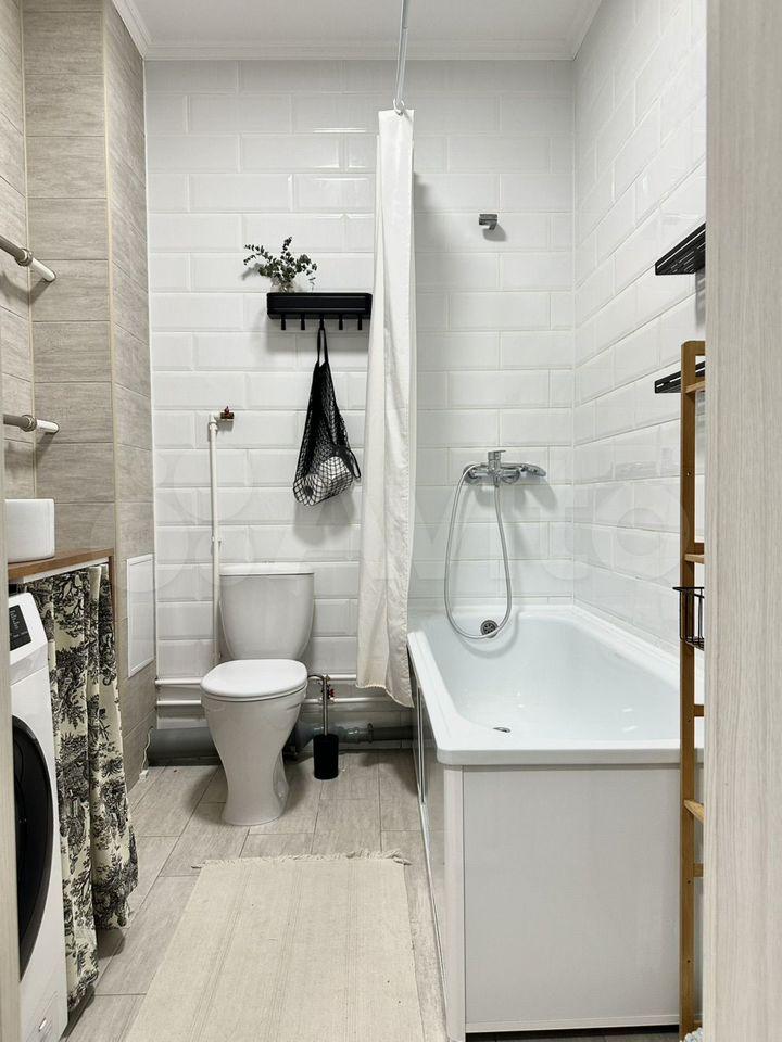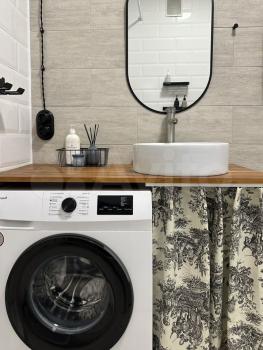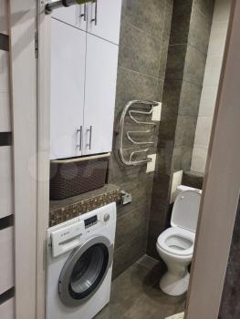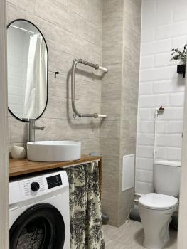 Санузел выполнен в современном стиле с ванной и стиральной машиной. В прихожей предусмотрены удобные встроенные шкафы. Так же на случай отключения горячей воды установлен водонагреватель.