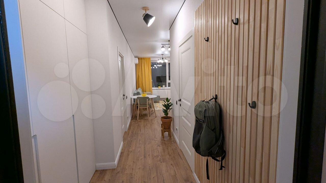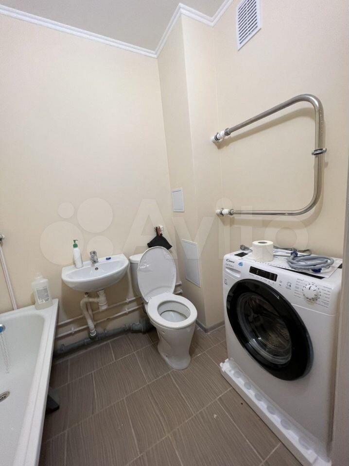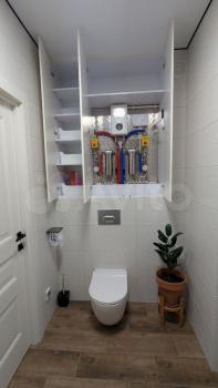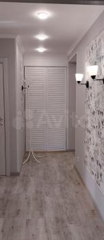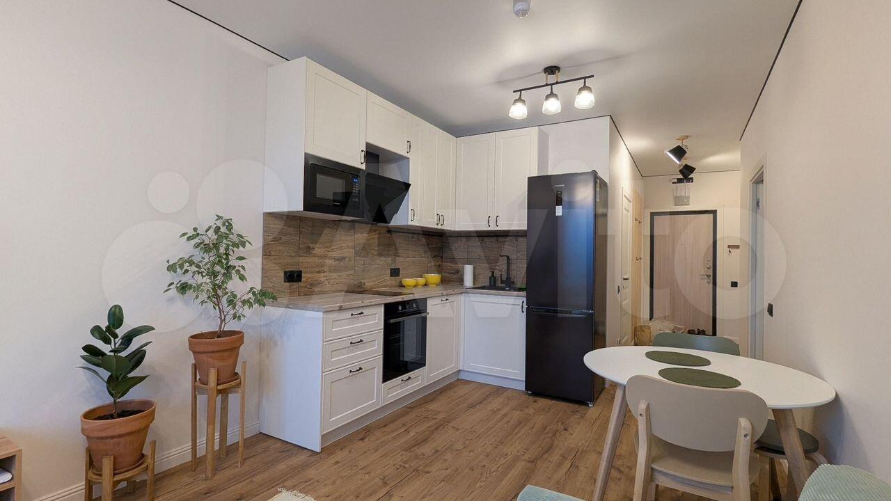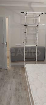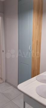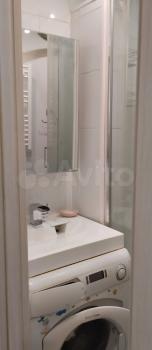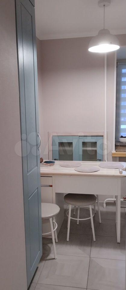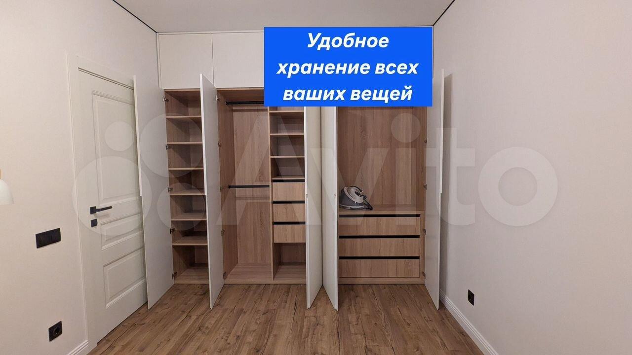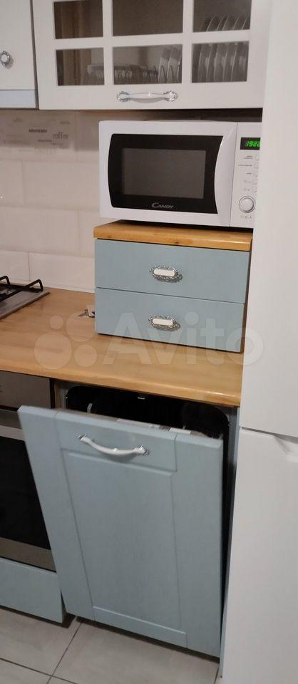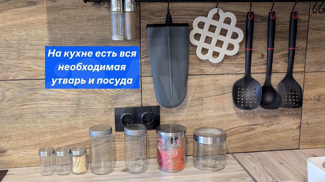 В прихожей стоит угловой шкаф для верхней одежды и обувница. Есть удобная гардеробная с перекладинами — все вещи можно хранить на вешалках. В совмещённом санузле установлен пенал для хранения. Кухня укомплектована мебелью, обеденным столом и стульями. Из техники есть холодильник (не ноу фрост), микроволновка и стиральная машина. Также предоставляются гладильная доска и вешалка для сушки белья.