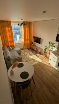 В квартире сделан косметический ремонт, она полностью меблирована и готова к заселению. Гостиная обставлена необходимой мебелью, а на кухне есть всё, что нужно для приготовления еды. В вашем распоряжении холодильник и стиральная машина. Санузел раздельный, в ванной комнате установлена ванна. Из окон открывается вид как на улицу, так и во двор, поэтому в квартире всегда много света.