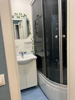 В санузле свежая сантехника, смесители, стеллаж и комод, оборудован навесными аксессуарами (для полотенец, мыла, стаканчики, крючки, ерш), стиральная машина, водонагреватель.