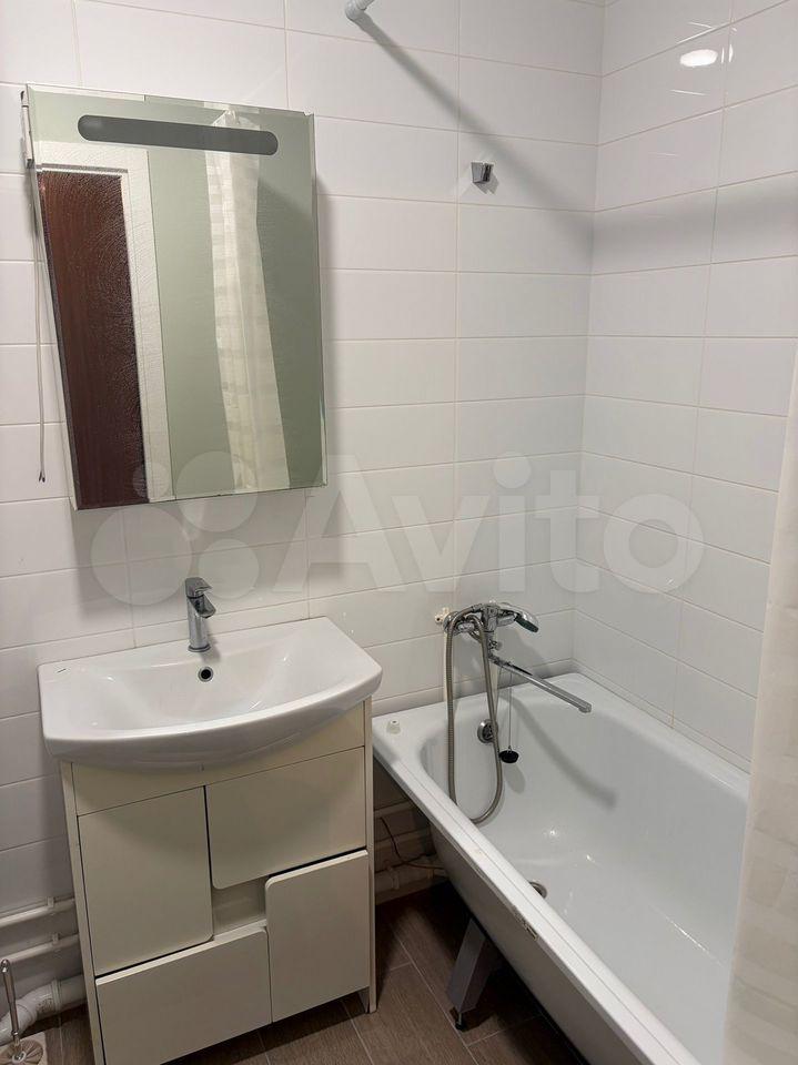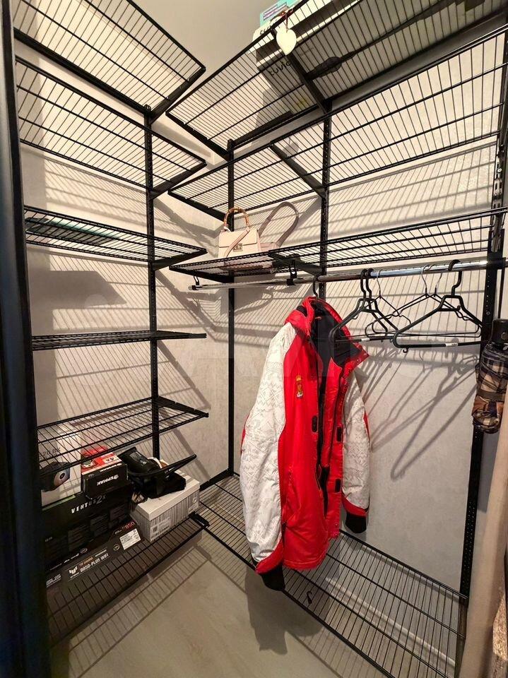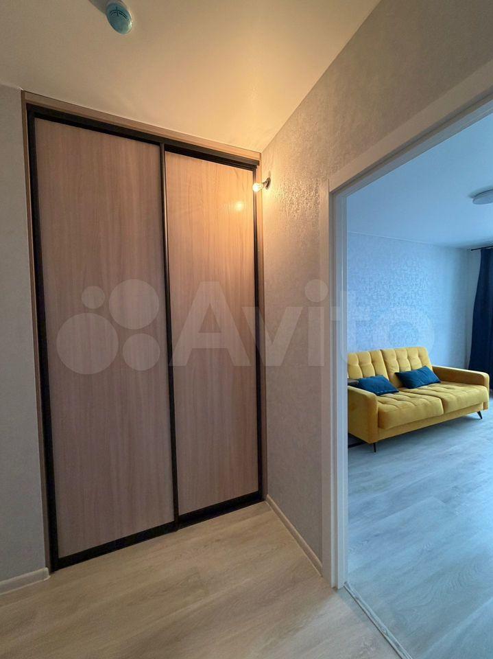 В квартире сделан свежий косметический ремонт. На кухне гарнитур, обеденный стол, табуретки. В комнате - шкаф-купе и журнальный столик, в прихожей кладовочка и вешалка для одежды. В санузле шкафчик с зеркалом и раковина на тумбе.