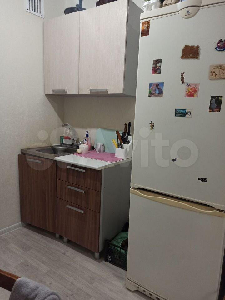 Кухня компактная, площадью 6 м², оборудована необходимой техникой, включая холодильник. Санузел совмещенный, с душевой кабиной.