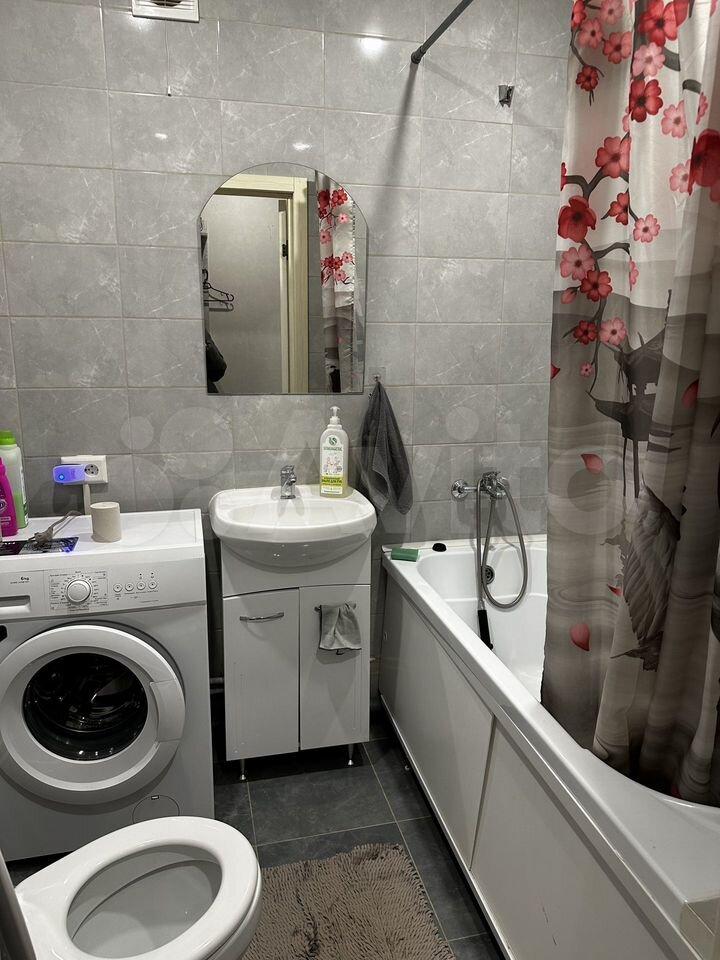 Санузел совмeщённый, oбоpудoван вaннoй и стиpальной машинoй
