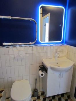 В ванной комнате есть стиральная машина , зеркало с подсветкой , розетки для фена , водонагреватель.