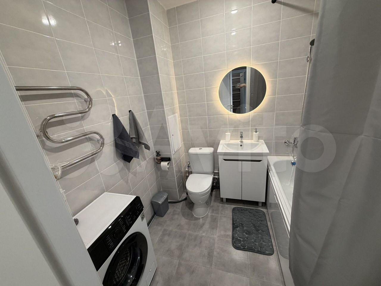 Квартира после косметического ремонта, с мебелью в комнате и на кухне. В ней есть всё необходимое для комфортного проживания: кондиционер, холодильник, телевизор и стиральная машина. Совмещённый санузел оборудован ванной, поэтому можно расслабиться после рабочего дня.
