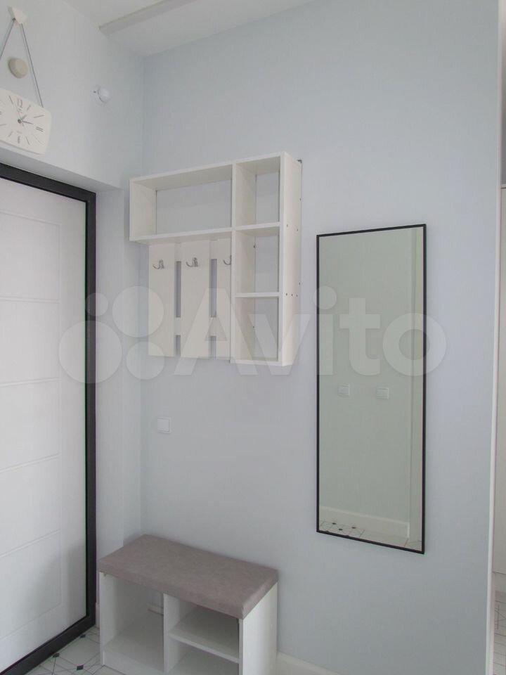5. В прихожей огромное зеркало и система хранения, предусматривающая целый шкаф для обуви и шкаф для хранения бытовых мелочей.