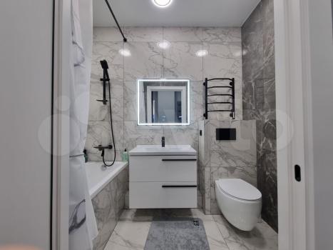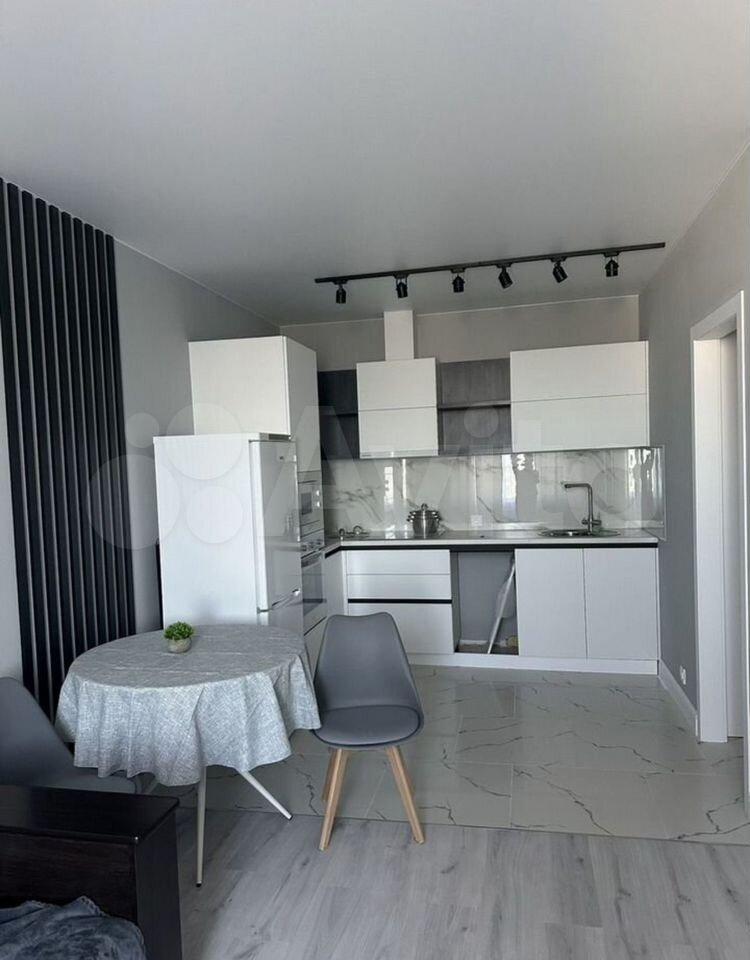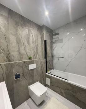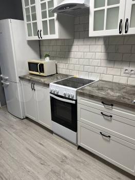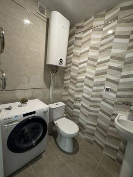 Кухня оснащена необходимой бытовой техникой, включая холодильник ,стир.машину и плиту. Санузел совмещённый, оформлен современной плиткой и оборудован ванной.