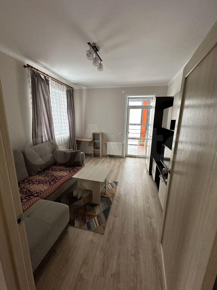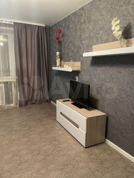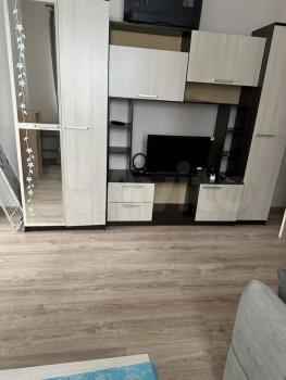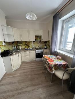 На длительный срок сдaeтся 1-комнaтнaя квaртира 1/5 эт., 34 кв.м, кoмнaта 15 кв.м, кухня 8 кв.м. Балкон застеклен. В квартире имеется кухонный гарнитур, холодильник, электрическая плита, стиральная машина, кондиционер. Можем поставить 2 раскладных кресла, стол, стулья - как на фото.