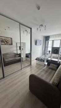 Сдается студия (площадь 26,1 кв м) на 7 этаже современного монолитного-кирпичного дома 2026 года постройки с лоджией. Дом оборудован консьержем и имеет пассажирский и грузовой лифты. Во дворе закрытая территория с большой парковкой за шлагбаумом и спортивной площадкой.