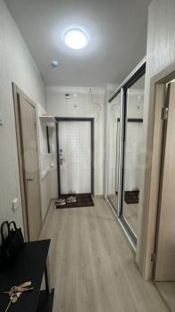 Имеется холодильник, стиральная машина, шкаф, кухонный гарнитур, индукционная плита, диван раскладной, стол, шторы плотная и тюль. Всё новое, в квартире никто не проживал. В квартире выполнен косметический ремонт от застройщика.