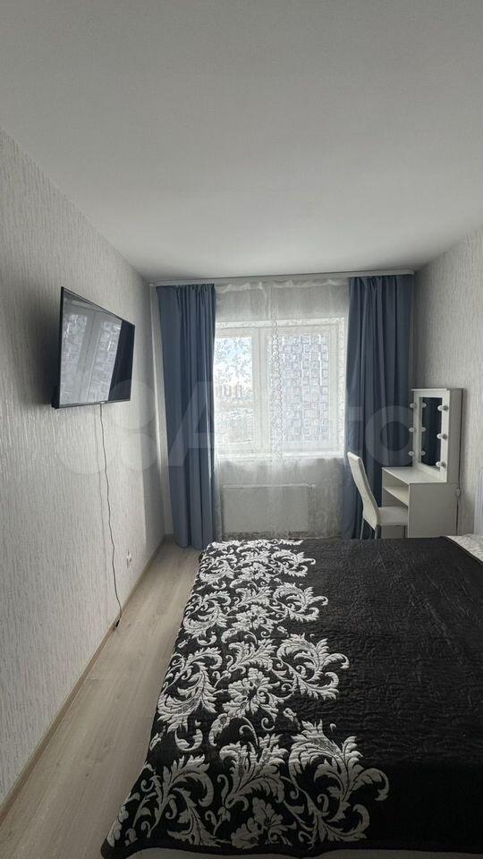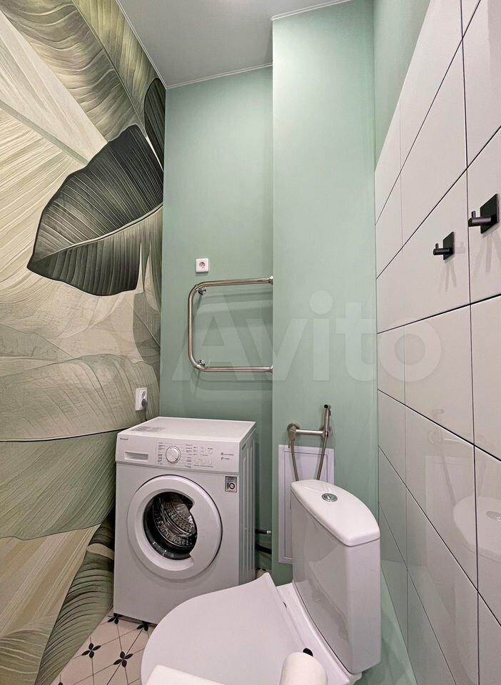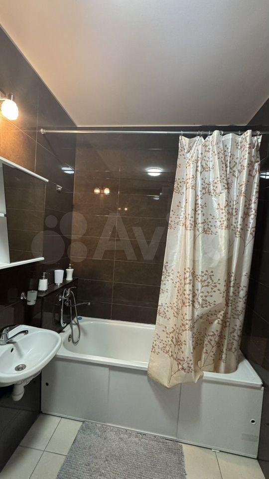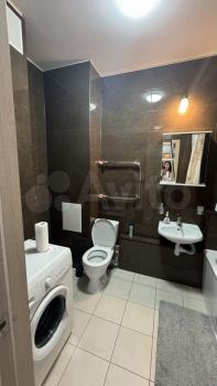 В комнате установлен вместительный шкаф, а также имеется выход на застекленную лоджию с видом на город. Санузел совмещенный, оборудован современной сантехникой и стиральной машиной.