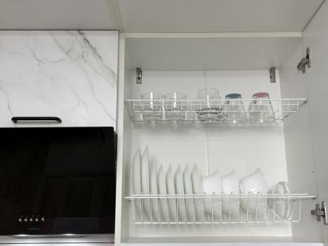 В квартире: стиральная машина, холодильник , микроволновая печь , кровать , плита , вытяжка .