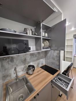 Есть все необходимое для проживания. Варочная панель, холодильник, микроволновая печь, электрический чайник, набор посуды - все для ваших кулинарных шедевров. Удобный диван, который превращается в двуспальную кровать. Установлен телевизор с мультимедийной системой, можно смотреть любимые фильмы и сериалы. Стиральная машина, утюг, сушилка и гладильная доска - для ухода за вещами.