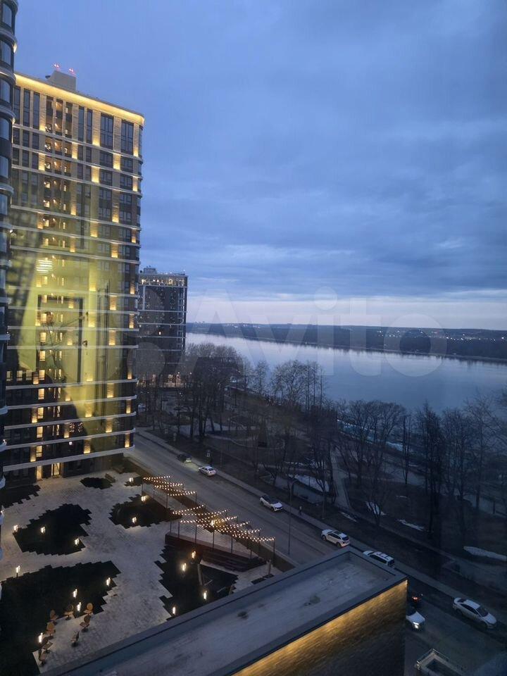 Квартира расположена на 10 этаже из 25, что даёт прекрасный вид из окон на город и водоём. В доме два пассажирских лифта, а также подземная парковка за шлагбаумом во дворе.