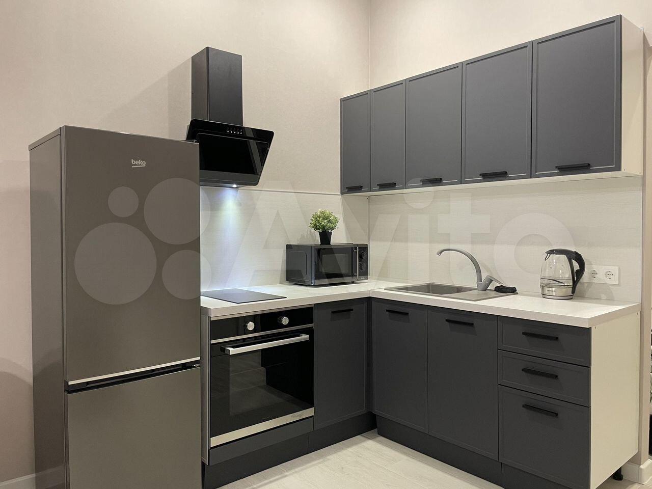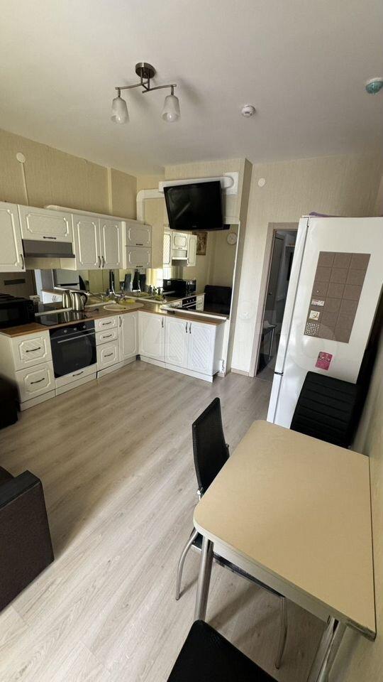 В квартире новый кухонный гарнитур, кухонный стол со стульями и диван.Есть холодильник и телевизор.Остальная техника и мебель обсуждается.