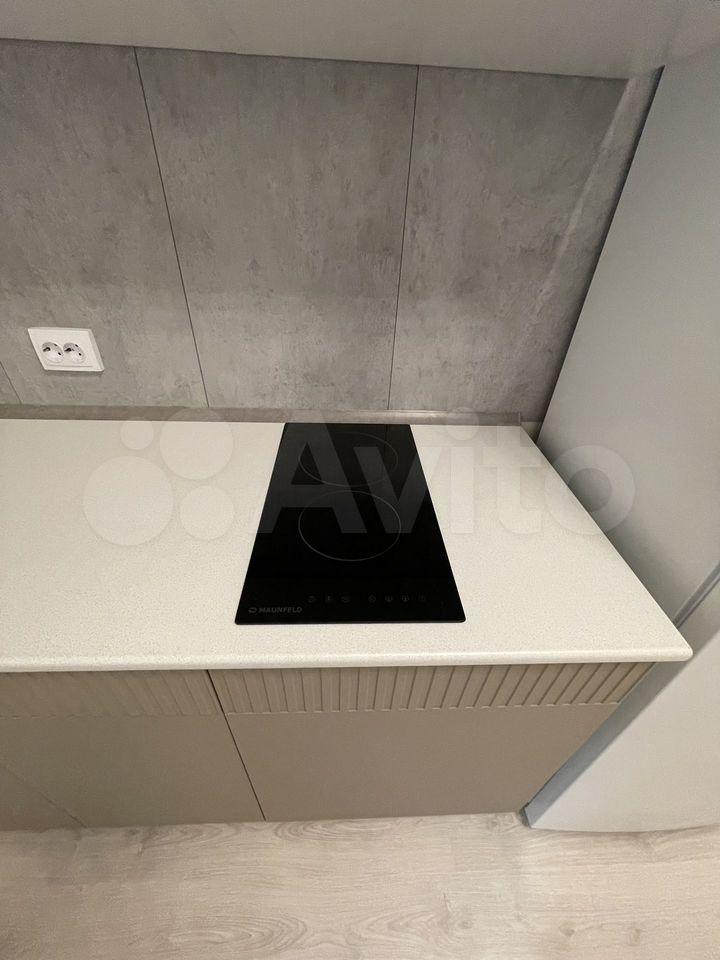 - На кухне- гостиной: новый кухонный гарнитур, холодильник, духовой шкаф, индукция. Смарт телевизор и диван.