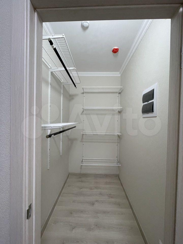 В квартире выполнен дизайнерский ремонт. Планировка продуманная, есть отдельная гардеробная — удобно для хранения и без лишних шкафов в комнатах.