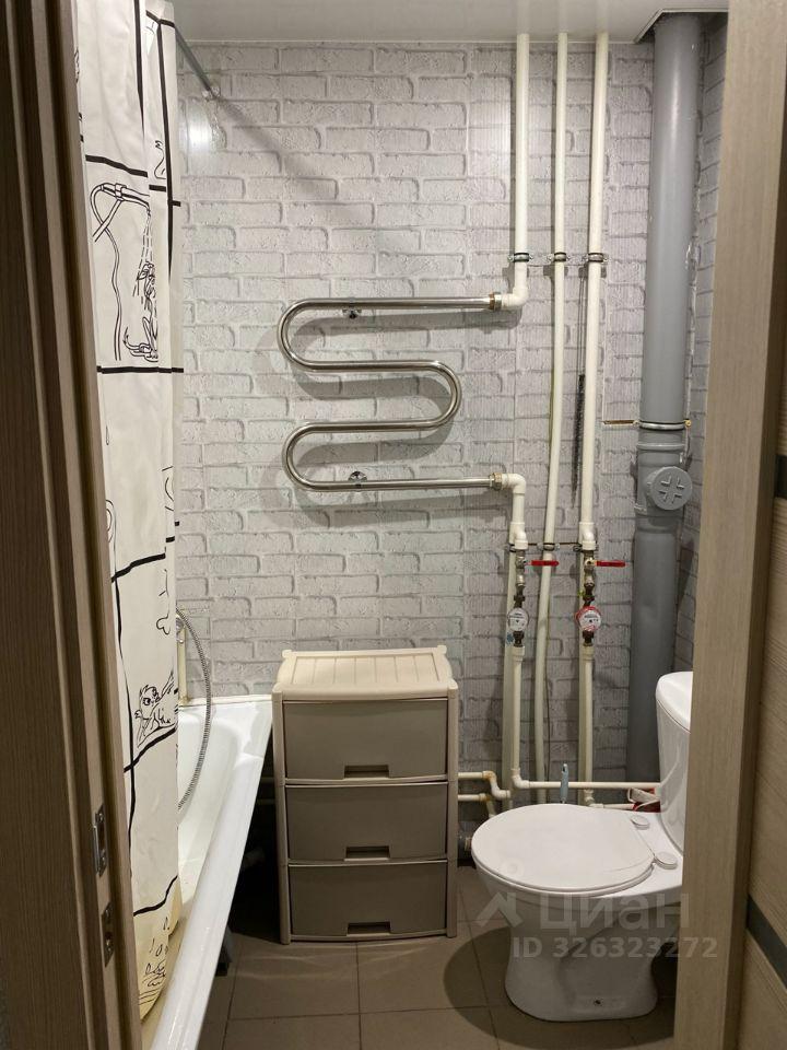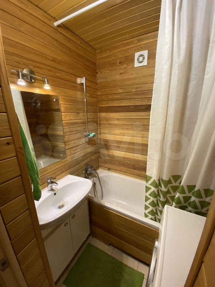 Санузел совмещенный, оборудован стиральной машиной. Из окон открывается вид на город, а балкон застеклен, что позволяет использовать его как дополнительное пространство.