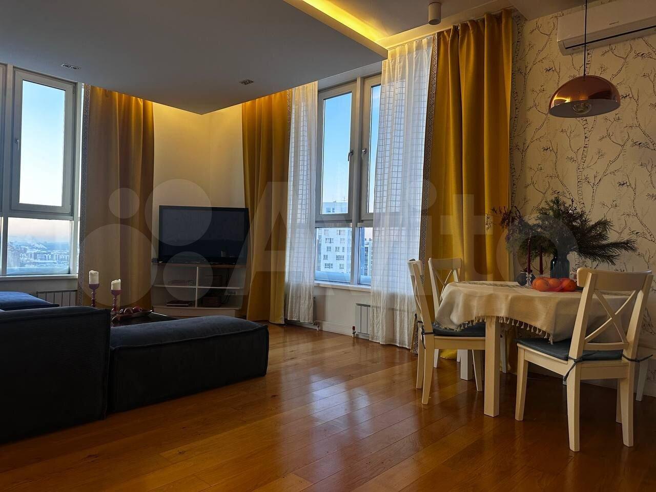 Квартира светлая, с большими панорамными окнами и реальным видом на реку, город и городские достопримечательности. Этаж позволяет наслаждаться панорамой без «окон в окна».