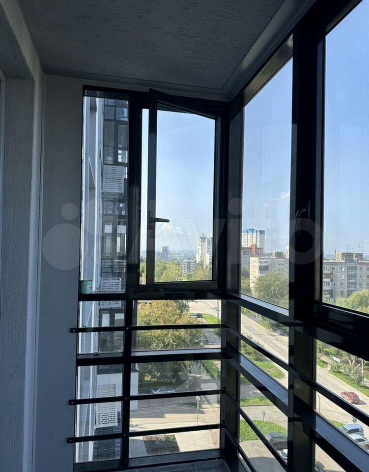 Студия расположена на 13м этаже, из окон открывается вид на проспект Парковый.