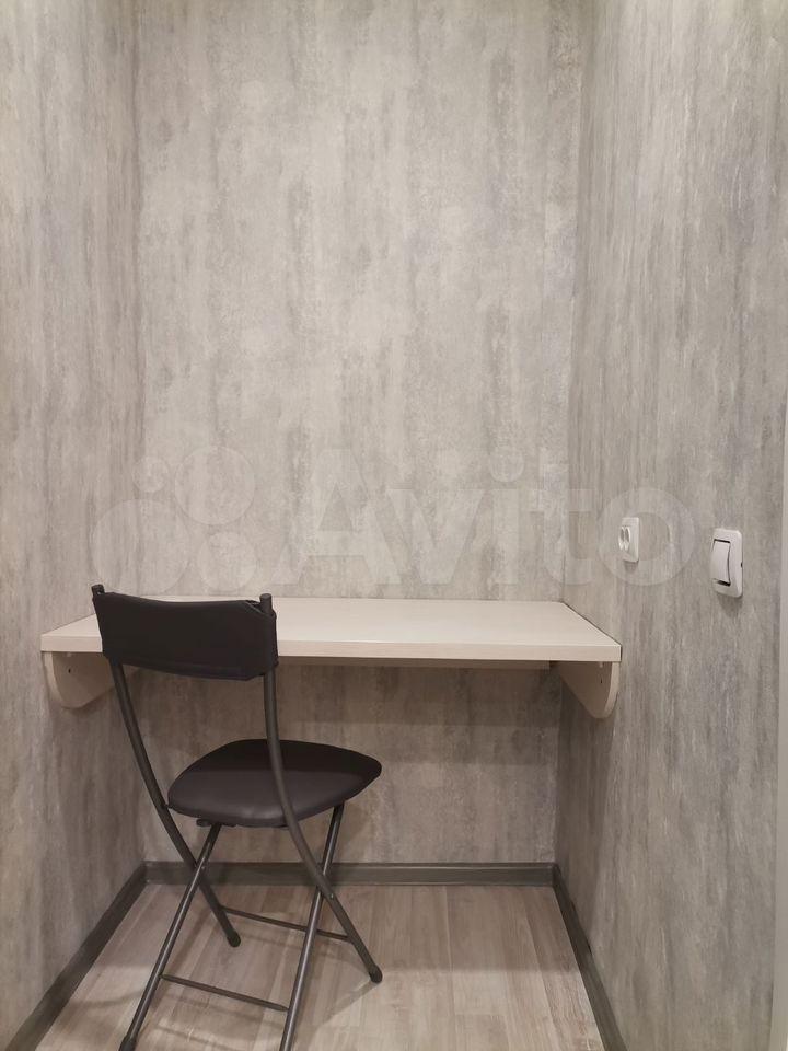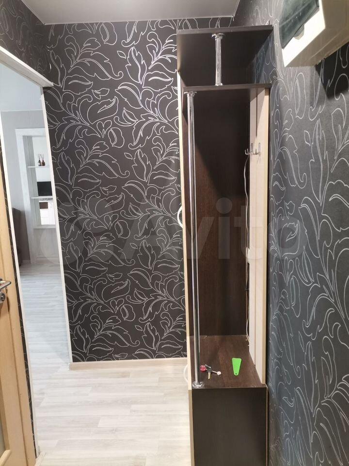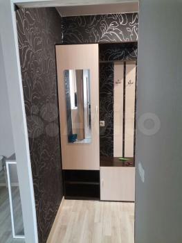 В квартире сделан свежий косметический ремонт. На кухне гарнитур, обеденный стол, табуретки. В комнате - шкаф-купе и журнальный столик, в прихожей кладовочка и вешалка для одежды. В санузле шкафчик с зеркалом и раковина на тумбе.