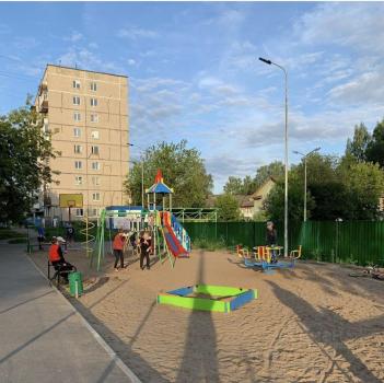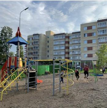 Территория дома огорожена, имеется Детская площадка, парковка.