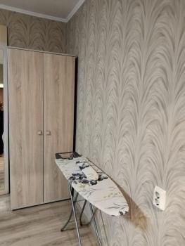В квартире выполнен евроремонт, поэтому обстановка современная и стильная. На кухне есть вся необходимая мебель и бытовая техника, включая холодильник. В комнате также имеется мебель, а для вашего удобства установлены телевизор и стиральная машина. Санузел совмещенный, с полноценной ванной, что делает проживание здесь максимально комфортным.