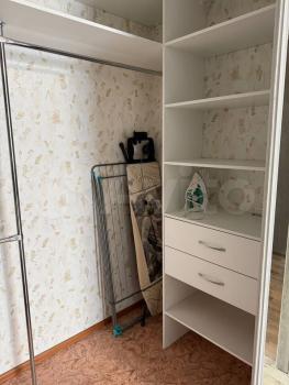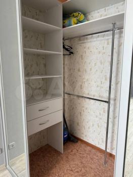 - В гостиной: большая оборудованная гардеробная, диван, настенные полки, журнальный столик, плотные шторы для комфортного сна.