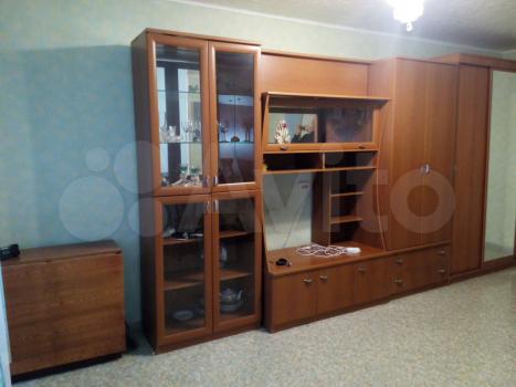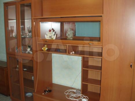 В комнате есть мебельная стенка со шкафом, стол-книжка, диван раскладной двуспальный, стулья. На кухне - кухонный гарнитур, плита, обеденный стол, табуреты, холодильник, в ванной - стиральная машина (текущий ремонт стиральной машины за счёт арендатора).