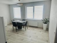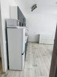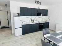 Кухня площадью 8 м² оборудована современной техникой: холодильник, плита, микроволновая печь и стиральная машина. Просторная гостиная с обеденной зоной и шкафами для хранения вещей. Комнаты изолированные, что обеспечивает комфорт и приватность.