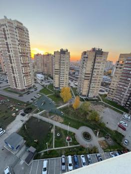 Окна выходят во двор и на дорогу, 15этаж.