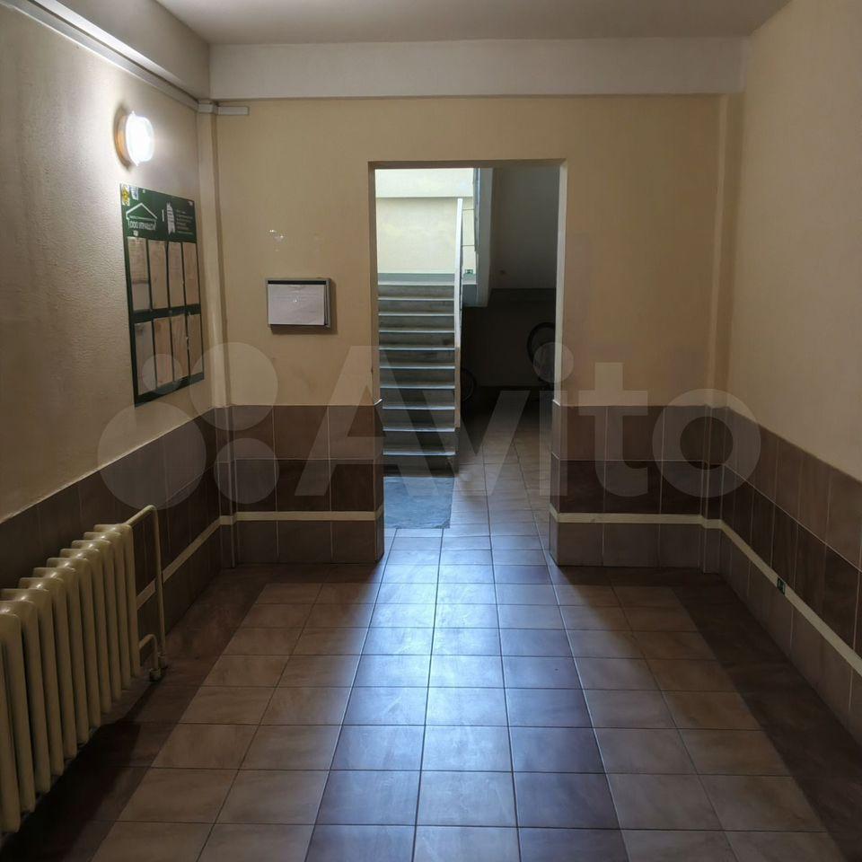 Квартира расположена на шестом этаже девятиэтажного здания. Есть пассажирский и грузовой лифты. Из окон открывается вид на двор с детской площадкой и открытой парковкой.