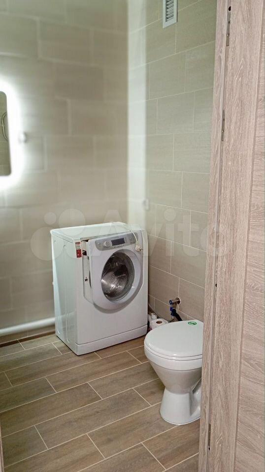 В спальне установлен большой трехстворчатый шкаф и двуспальная кровать. Ванная комната оснащена ванной, раковиной и полотенцесушителем. В туалете установлена стиральная машина и водонагреватель. Наличие одной лоджии и отдельной гардеробной комнаты с системой хранения расширяет пространство для отдыха и хранения вещей.