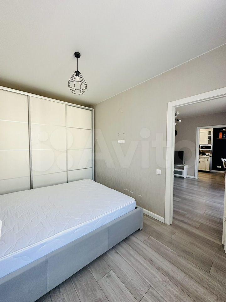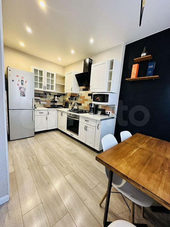 В квартире выполнен косметический ремонт. Просторная кухня-гостиная оборудована необходимой мебелью, есть холодильник, варочная панель, духовой шкаф, микроволновая печь и посудомоечная машина. В комнате также имеется мебель, что позволяет сразу заселиться без дополнительных хлопот.