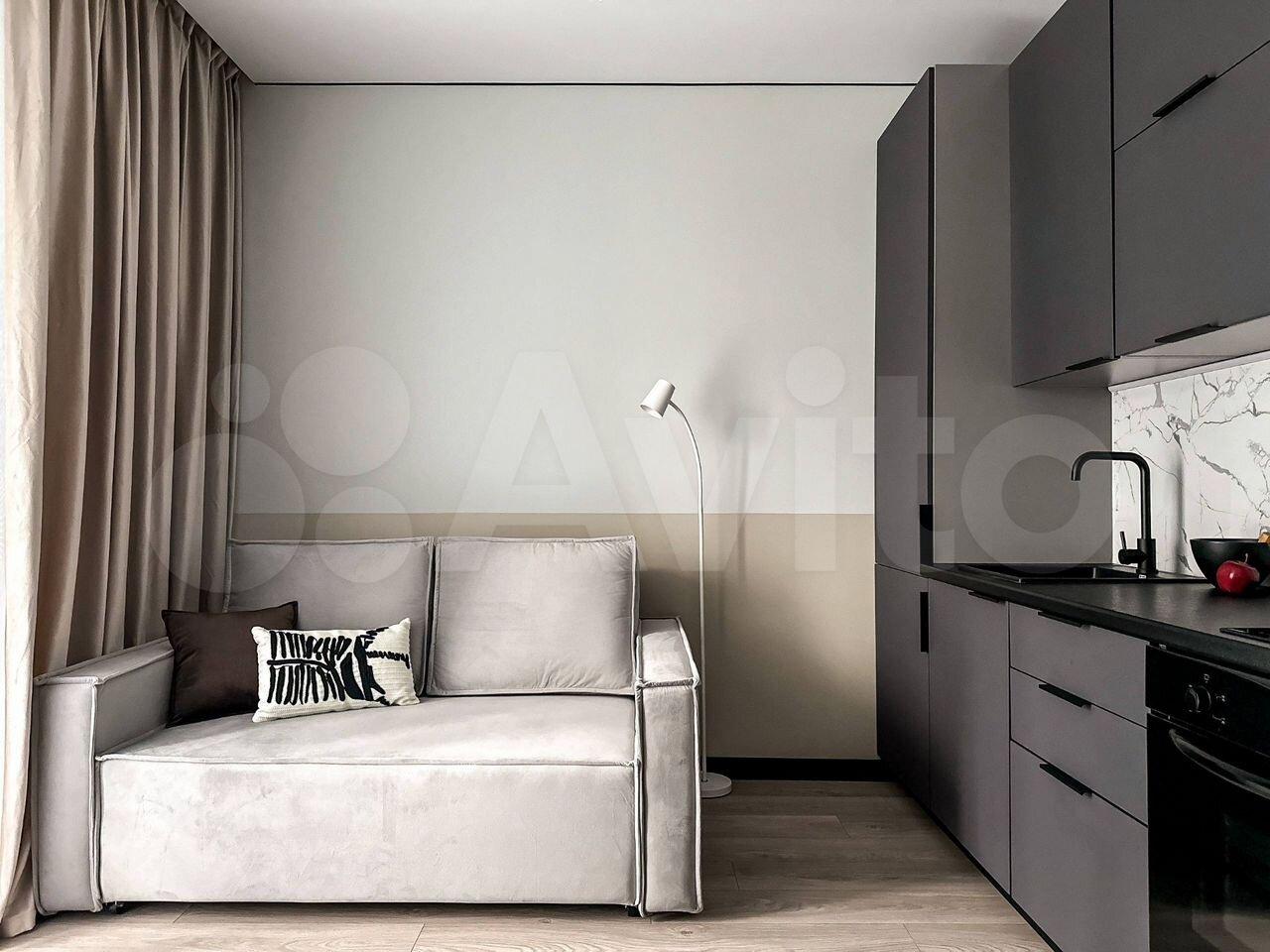 Кухня гостиная 20 квадратов, большой раскладной диван, качественная немецко-австрийская кухонная мебель