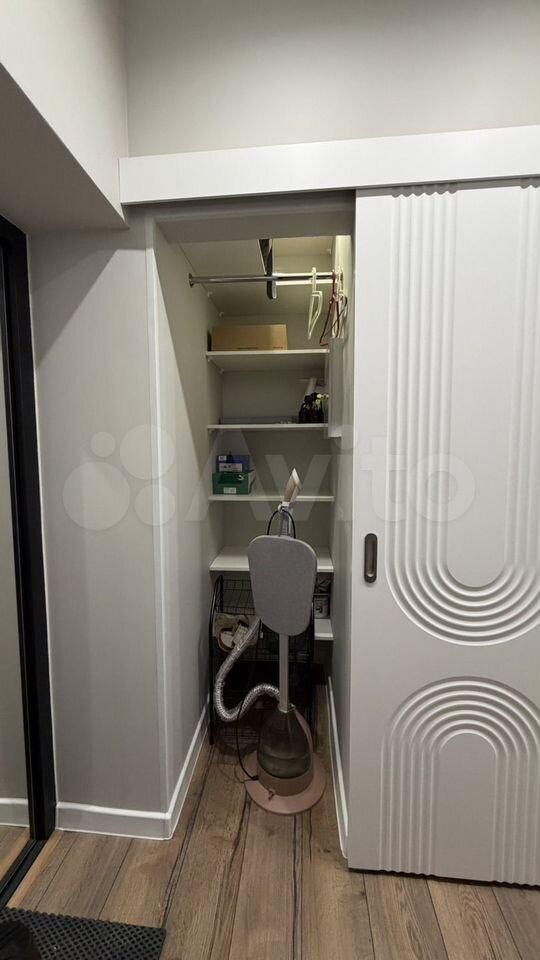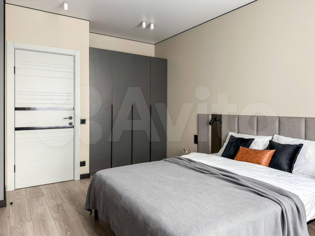 Мебель и хранение: всё необходимое уже есть: кровать, диван, шкафы, места хранения продуманы, квартира выглядит аккуратно и свежо.