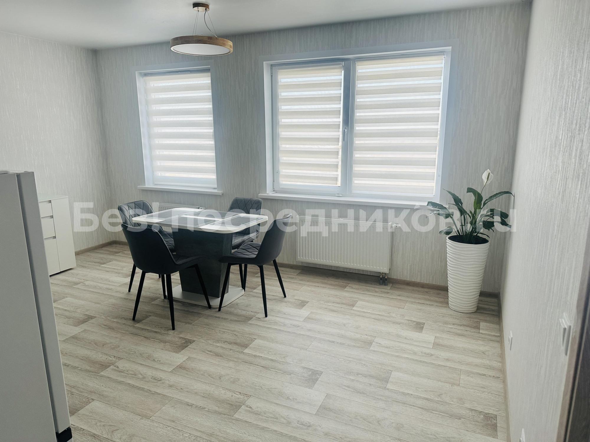 Имеется вся необходимая мебель( обеденный стол,шкаф большой,журнальные столики,кровать спальная,диван раскладной )и техника ( холодильник,телевизоры,микроволновая печь,стиральная машина,плита и духовой шкаф,утюг и гладильная доска)Лоджия застеклена,что позволяет использовать как дополнительное пространство,отделка от застройщика,в квартире курение запрещено,но разрешено жить с детьми.