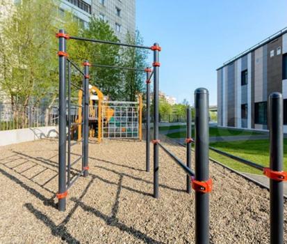Закрытый двор с современной детской площадкой и зоной с тренажерами, консьерж, видеонаблюдение.