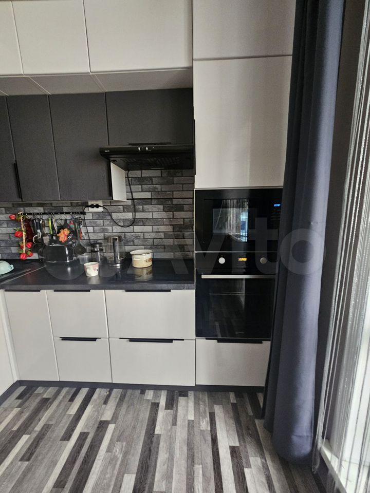 Кухня оборудована необходимой бытовой техникой: холодильник, духовой шкаф, варочная панель, микроволновая печь и электрический чайник.
