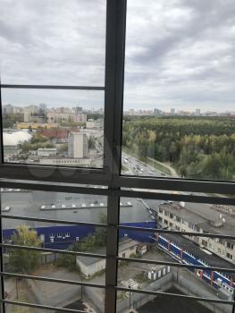 Вид на город с 17-го этажа, балкон с панорамными окнами и огромное окно в спальне.