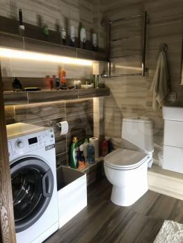 Отличный ремонт сделанный для себя: керамогранит, декоративная краска, ламинат под корабельную доску, качественные обои, двойной свет в каждой комнате, двери из натурального дерева, качественные смесители, стиралка, телевизор, хорошая мебель.